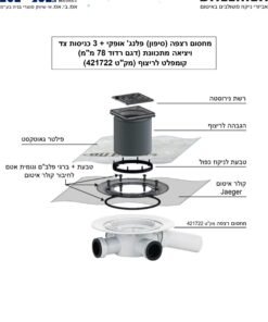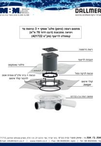 מחסום רצפה (הניקוז הכפול לריצוף) כניסה "4 / יציאה "2  (רדוד)  (3 כניסות צד + יציאה אופקית מתכוונת "2)