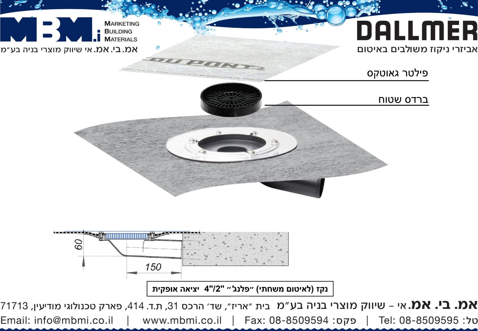 נקז לגגות (ומרפסות) פלנג' 2"/4" (מתאים לאיטום ביריעות EPDM ,PVC, או JAEGER)